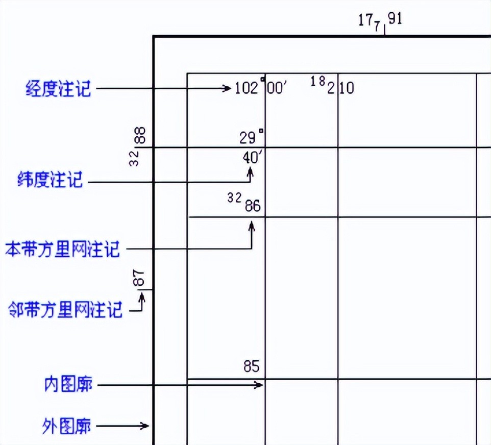 列号:从经线1800算起,自西半球向东半球每60为一列,全球3600,共分60列,依次用阿拉伯数字1、2、3、4、5……60表示。我国位于东半球,因此其列号总是大于30。