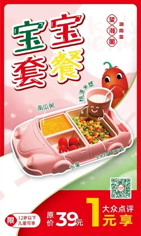 凡6.1儿童节,带儿童任意消费即可免费享受宝宝餐一份。