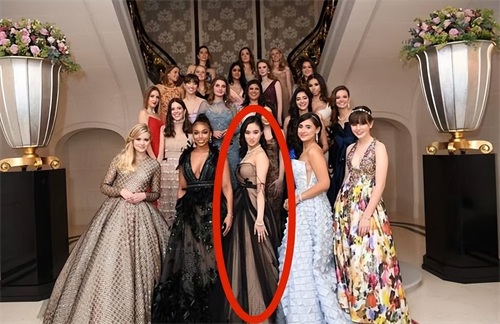 在舞会上,她与法国影星贝尔蒙多的孙子大秀舞姿,甚至在最后的大合影上还稳居C位