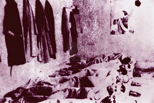 病栋的西头有两间木房,是集中营的停尸房,每天死的人都抬到这里,由休门镇的拉尸队往外拉。每天傍晚,拉尸队进集中营,经过集中营日本医兵验尸,门岗验证,把尸体拉到休门义地的“万人坑”里掩埋。
