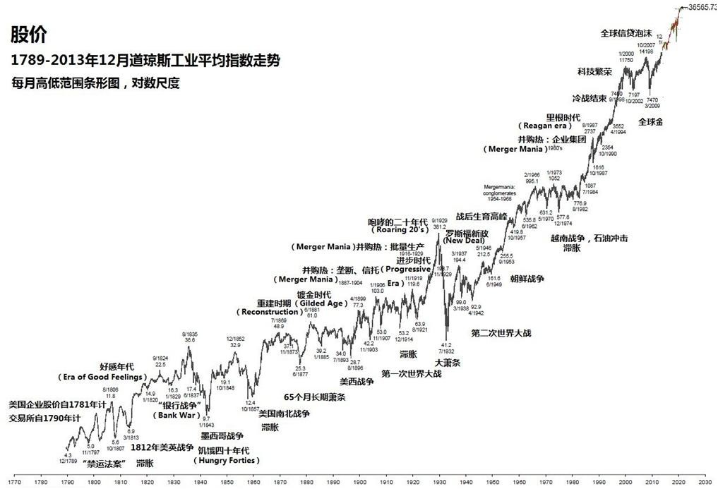 本真曰:在绝大多数投资者的感性认知中,战争尤其是二战才是世界经济乃至股市最大的危机,实情并非如此,至少在美国不是。实际上,二战只是经济危机的果,而经济危机则是由美国1921年到1929年疯狂大牛市引发的,二战对美国股市的冲击,远不如经济大萧条。图中可以看到,从1932年大萧条的底部至今,美股走了一个更加漫长的超级牛市。即使2000年和2008年的经济危机,也没能拉住这头狂奔的牛。在本真看来,这波汹涌的延长浪之后,美股必将迎来一个堪比1930年大萧条的超级衰退。历史告诉我们,万物自有生老病死,强大如美国也是一样,美股曾经怎么长上去的,将来就会怎么跌下来。