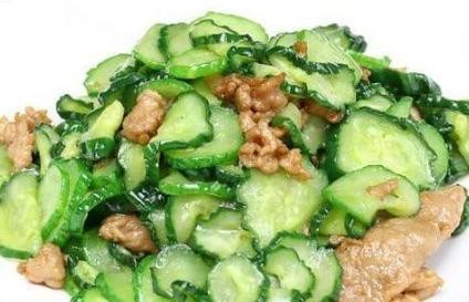 肉片100克,黄瓜1条,葱、姜末各适量。