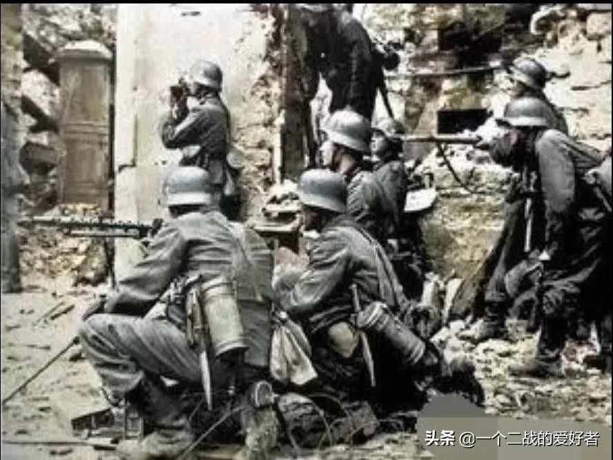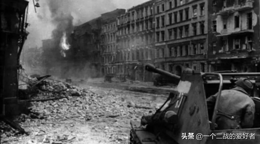 城内由德军和武装党卫军残存部队、警察、希特勒青年团和国民突击队防御,国民突击队由一些一战老兵和曾经参军的人所组成,图为嵌入街道中的坦克炮塔作为防御火力点。