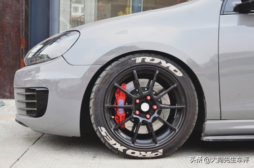 水泥灰这一颜色,对高尔夫这车似乎有一种独钟,完美瑕的帖在它身上,使这车形成独特的迷惑手段,吸引了众人的目光。俗话有说“百改降为先,一低遮百丑”高尔夫原厂的高度,简直要跟五菱宏光高了,先装一套绞牙避震,装完前后高度恰好一指多点。