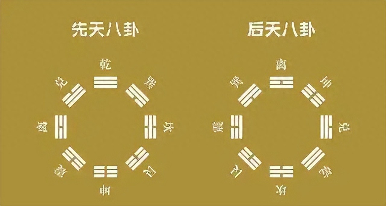 后天八卦是文王八卦,方位与伏羲的先天八卦不同,形成离南,坎北,震东,兑西,艮东北,坤西南,乾西北,巽东南。两者相比较,文王八卦的的离坎日月已代伏羲八卦的天地运行不息,震兑也带日月而升降。