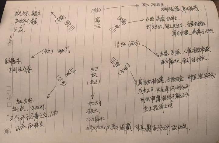 后天八卦是从四时的推移,万物的生长收藏得出的规律,从说卦传中可以看出,万物春生,夏长,秋收,冬藏,每周天360日,八卦各主45日,其转换点就在四正四隅的八节上,每卦有三爻,三而八之,即指一年二十四个节气。