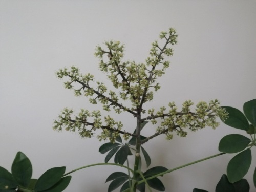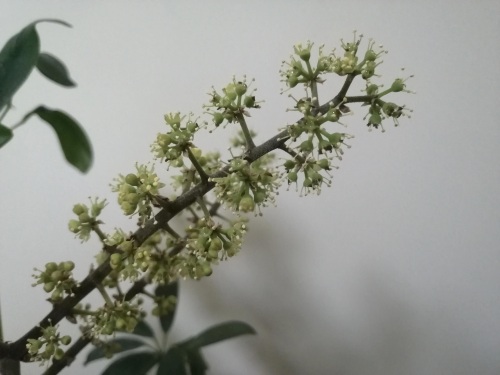 这是我第一次看见开花的发财树,在我印象中发财树不开花,通过查询资料才发现,这是我的知识浅薄,只要你养殖的温度、湿度和养分达到一定条件,发财树是会开花的。