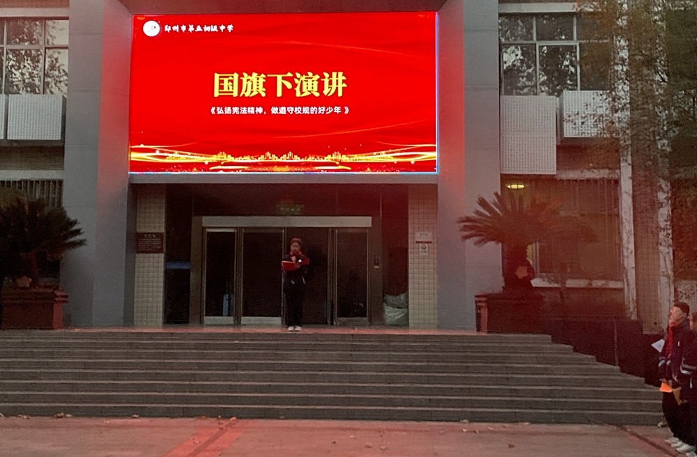用宪法之灯塔,照亮少年星辰。为迎接宪法日的到来,加强对青少年的法治宣传教育,12月2日,郑州市第五初级中学——郑州外国语学校(集团)五中校区举行以“弘扬宪法精神,厚植法治信仰”为主题的升旗仪式。这不仅仅是一次简单的仪式,更是一场心灵的洗礼,一次对法治精神的深刻感悟。