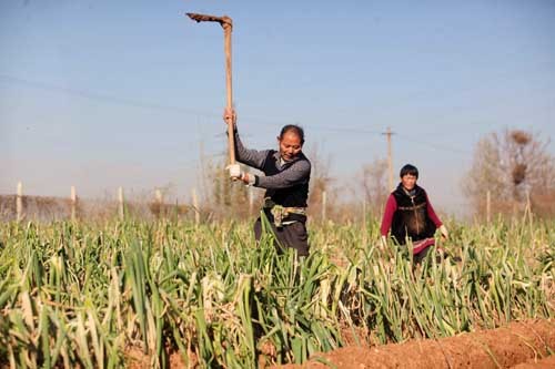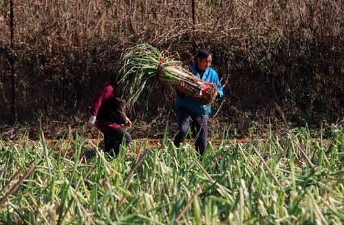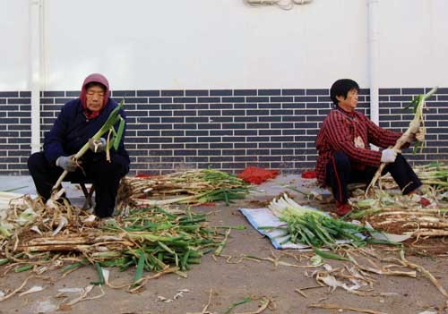葱农们在忙着剥葱