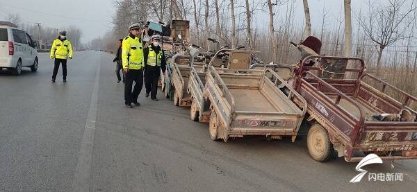 小货车变“小火车”车尾拖挂20余辆三轮车被莘县交警当场查获