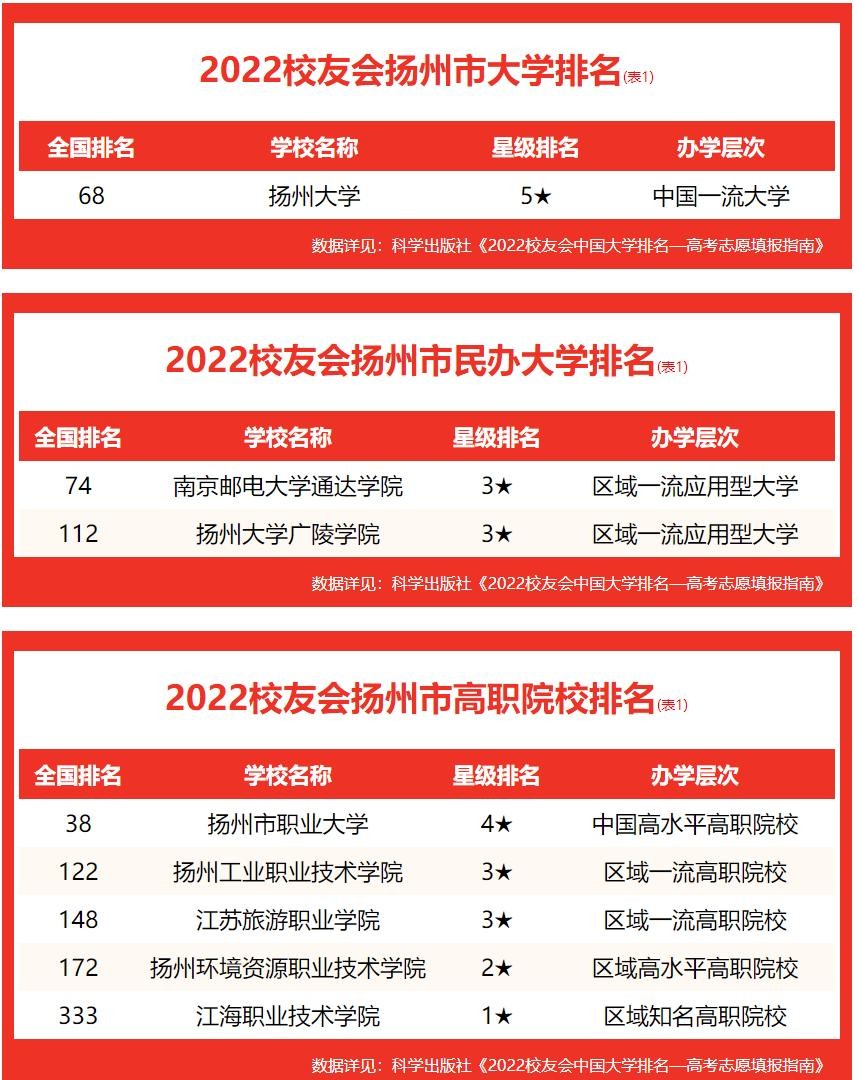 校友会2022扬州市高职院校排名,扬州大学雄居第一,挺进全国70强