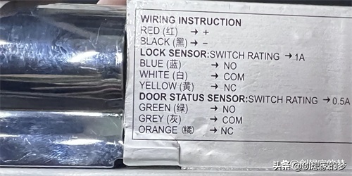 不用理会一大堆的蓝白黄灰等,只需要找到正负极就行(仅限于正常开锁闭锁,有其他需求,还要找专业人员配置),负极就是GND,正极就是+12,就是上图的红+、黑-。