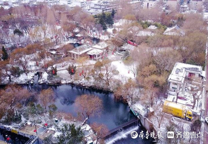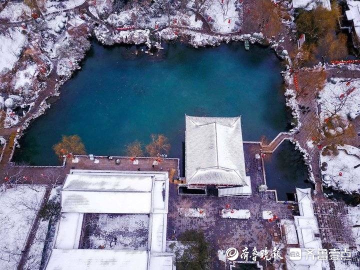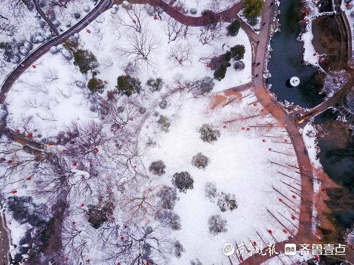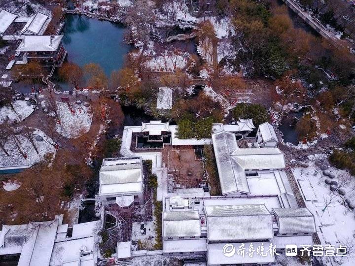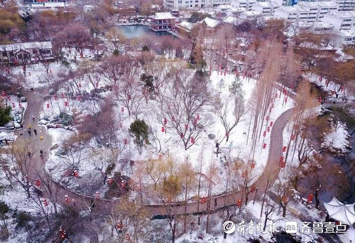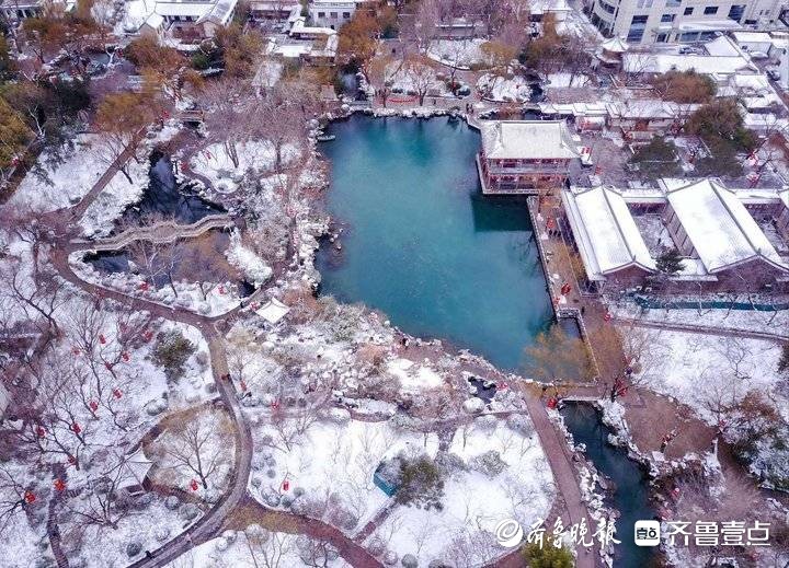 新年第一场雪后,济南五龙潭景区银装素裹。景区的红灯白雪映衬小桥流水人家,济南老城韵味十足,令人喜爱。
