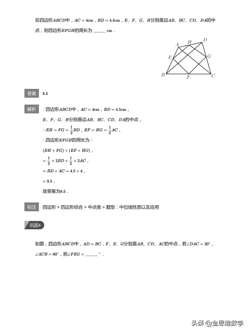 中点是最特殊的一个点,和中点有关的知识点有倍长中线、斜边中线,中点四边形等内容。