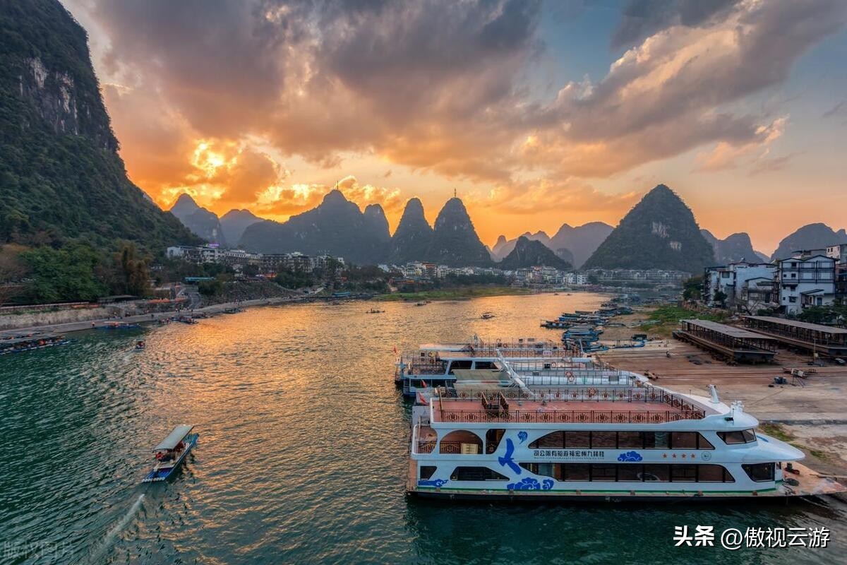 打卡20元背景、5A漓江游船、兴坪古镇、十里画廊骑行、遇龙河竹筏、篝火晚会、侗家八大碗、银子岩、长桌宴