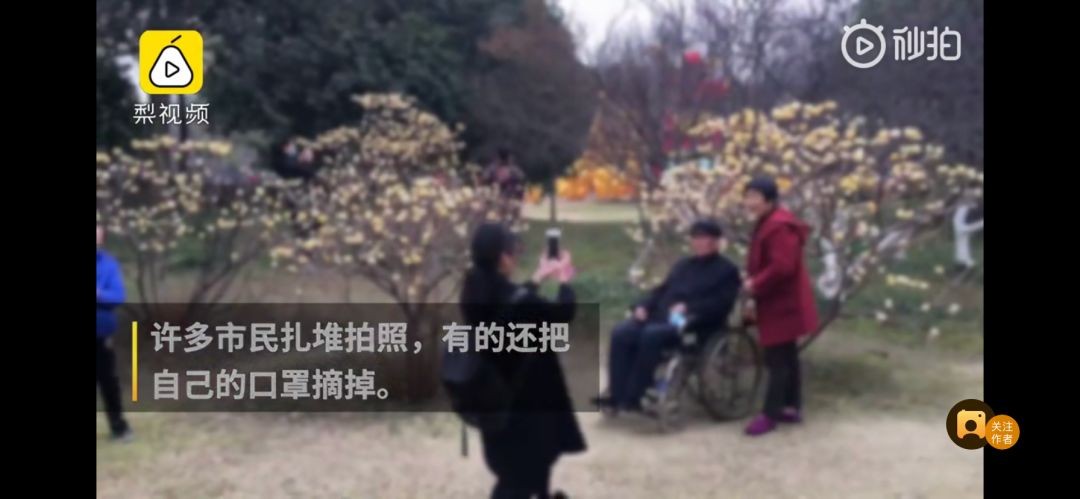 而且为拍照好看,有游客故意踢树制造“花瓣雨”,还有人干脆摘掉口罩,和同伴贴脸合影。