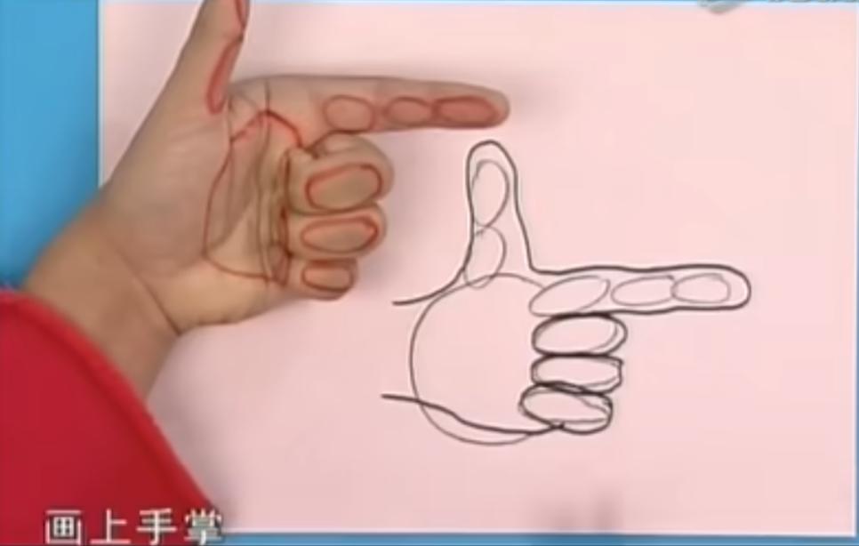 比如教小朋友画手,他会让我们把手掌想象成盘子,把手指想象成一节节香肠,然后用铅笔画出来,最后再用记号笔描边。