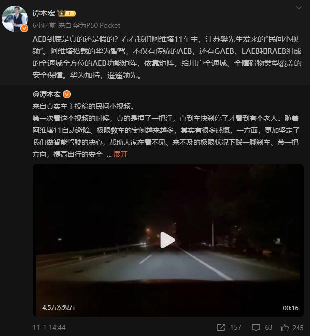 这则视频也被阿维塔 CEO 谭本宏多次转发。