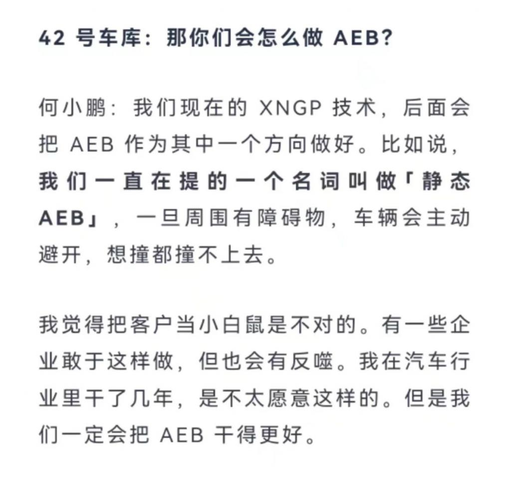 这么看,何小鹏的 "AEB 功能 99 % 是假的 ",显然缺乏论据。