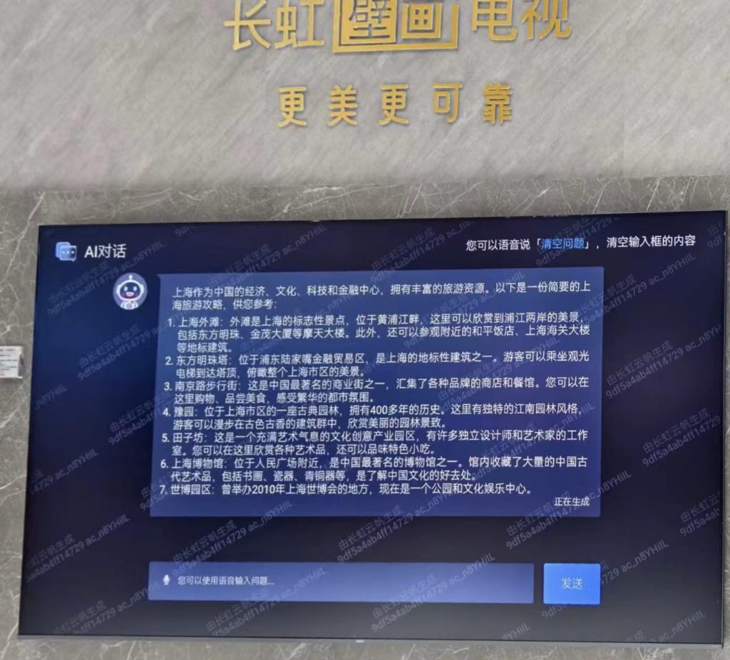 长虹也推出了电视 AI 大模型——长虹云帆。比如,在长虹电视上,用户可以与 AI 对话,生成图片壁画。