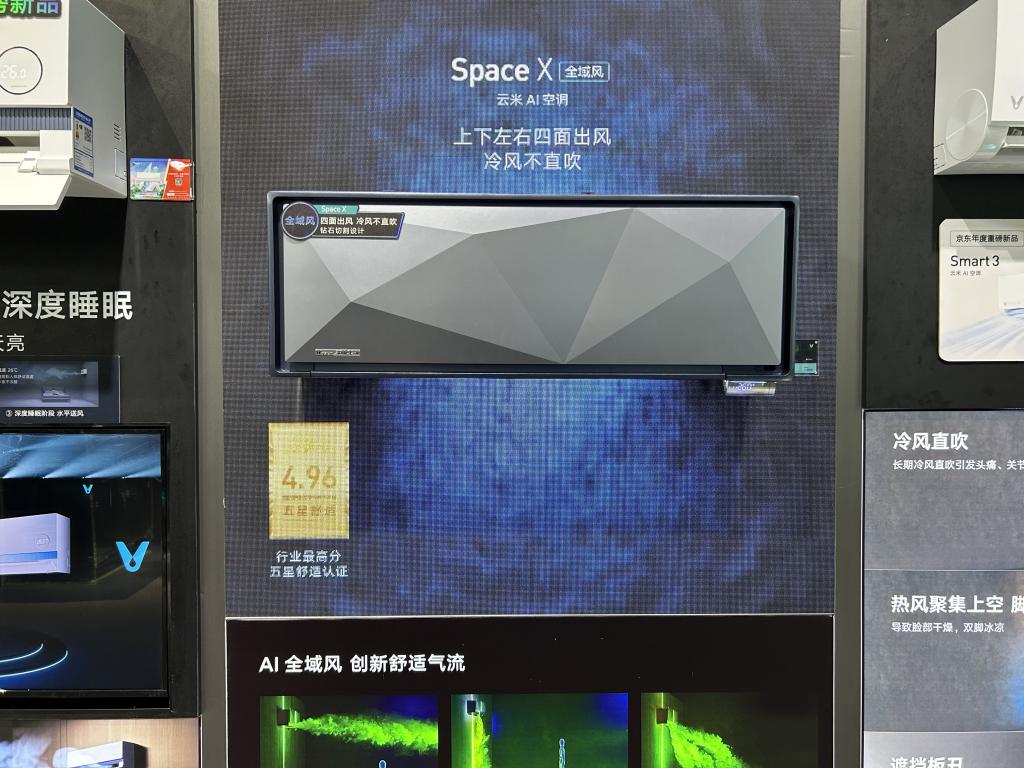 全屋智能家电品牌云米也展示了多款 AI 家电。云米 AI 空调的主要卖点是冷风不直吹,通过结构设计,实现了四面出风。在云米 AI 空调上,用户可以通过语音控制、手机连接。此外,这款空调还可以智能感知温度、湿度,根据环境自动调节出风温度。
