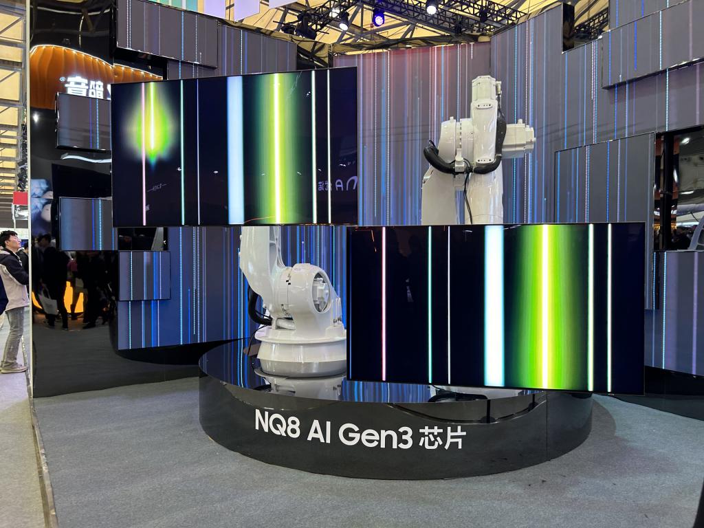 三星的 AI 电视同样搭载着三星新一代 AI 芯片 "AINQ8 AI Gen3",据介绍,这颗芯片支持 8K AI 影像增强、三维景深增强、AI 音质调教,能够给用户呈现更好的音画表现。