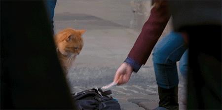 每次鲍勃一出现,就会被一群人围着照相、抚摸,但鲍勃一点都不闹,也不害怕,只是静静的呆在詹姆斯的身边,长时间在大街上生活的鲍勃,已经熟悉了伦敦街头的喧哗。
