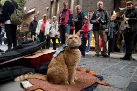 詹姆斯和鲍勃经常一起在街头散步,或者一起在广场卖唱,一人一猫逐渐成为了当地的一道风景线。