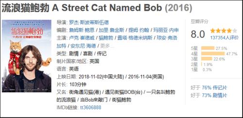 根据小说改编的同名影片,2016年11月在英国上映,2025年11月在中国上映,猫鲍勃则在电影中饰演它自己,获得了众多影迷的喜爱。