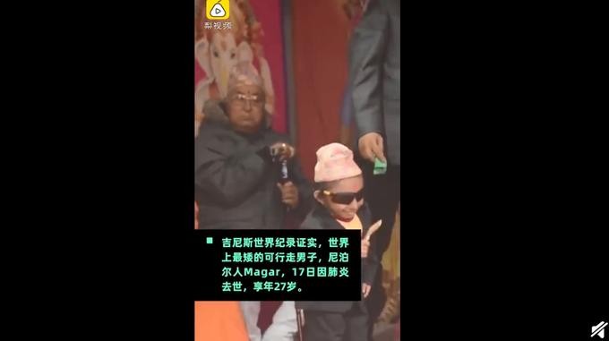 据《吉尼斯世界纪录》网站1月17日消息,世界上个子最小的人卡根德拉·塔巴·马加尔(Khagendra Thapa Magar)于当天去世,终年27岁。