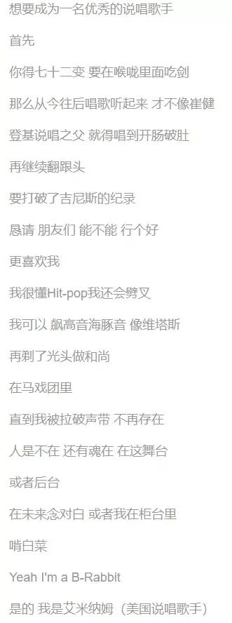 其次,他在节目上展示的形象过于正能量了,他并没有2014年谢帝上央视说“老子”的那份霸气,这显然也很难让underground的rapper信服。最后,从技术层面来讲,至少开麦的小安迪是有资格批评杨和苏的水平不行的。客观上说,这首《Bad》的作词也确实存在很大的水分。