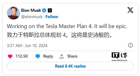 现在,马斯克表示他正在着手制定 " 特斯拉宏图第四篇章 ",并且它将是 " 史诗级的 "。