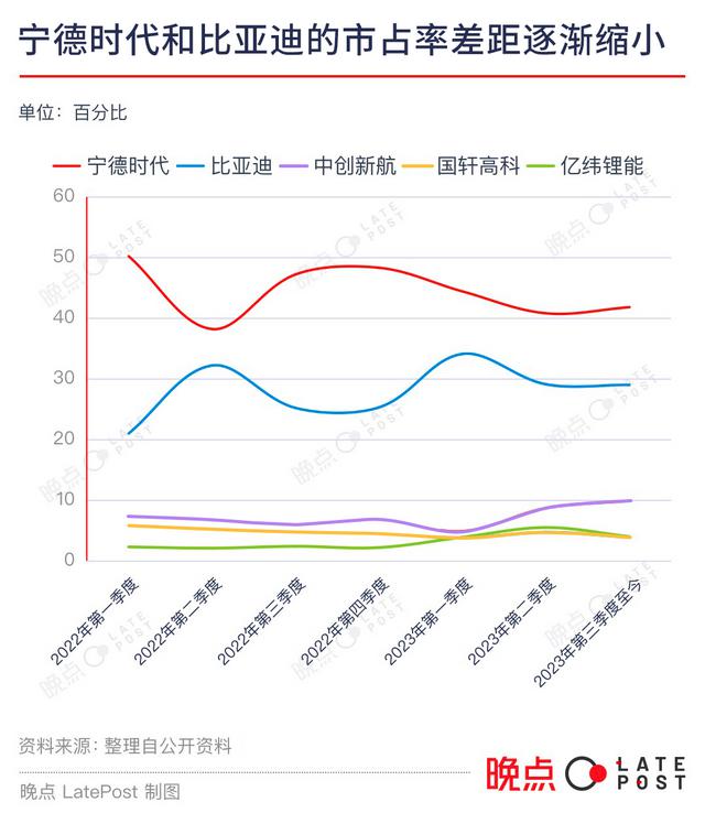 宁德时代面对的竞争对手也因此多了十倍。一位电池公司高管曾对《晚点 LatePost》说:" 中国能做好三元锂路线的团队不超过 5 家,而能做好磷酸铁锂的可能有 50 家。"