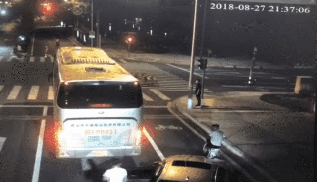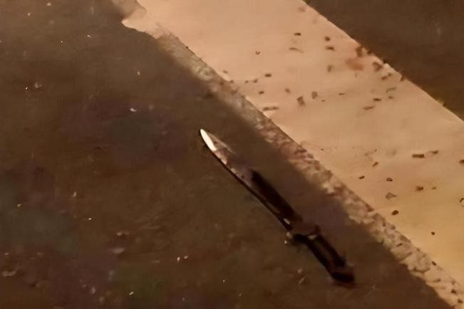 出于本能一直在躲闪,可在连续几次挥刀过后,戏剧性的一幕发生了,刀竟然脱手飞了出去,掉在马路上。