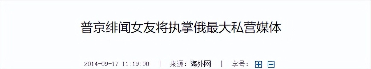 信息来源:《普京绯闻女友将执掌俄最大私营媒体》,海外网,2014年9月17日。