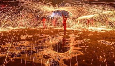- 千年非遗打铁花首次亮相苏州张桥抖起来达人谷为苏城献上最美焰火