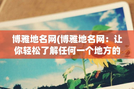 博雅地名网(博雅地名网:让你轻松了解任何一个地方的历史、文化和风情)