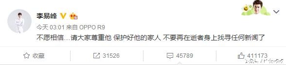 然而在乔任梁去世之后,一些不好的言论已经危及到乔的家人,请大家不要误传虚假信息,维护好微笑王子生前与去世后的声誉,在第一时间好兄弟李易峰、井柏然、付辛博微博纷纷发声