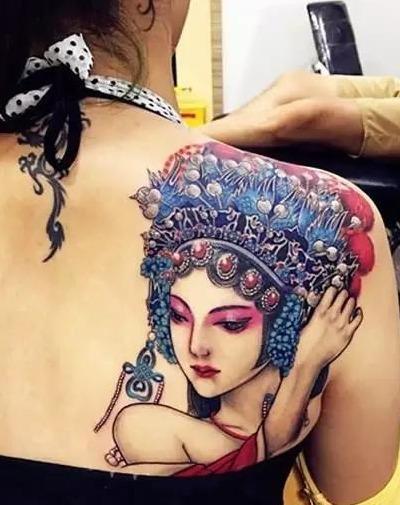 那什么人适合纹花旦呢,小编认为只要喜欢这个图案都可以去做,可以找一些现有的图稍加改动纹在身上,也可以找一些经验丰富的纹身师让他把你的爱人或者家人照片改成花旦的形象。
