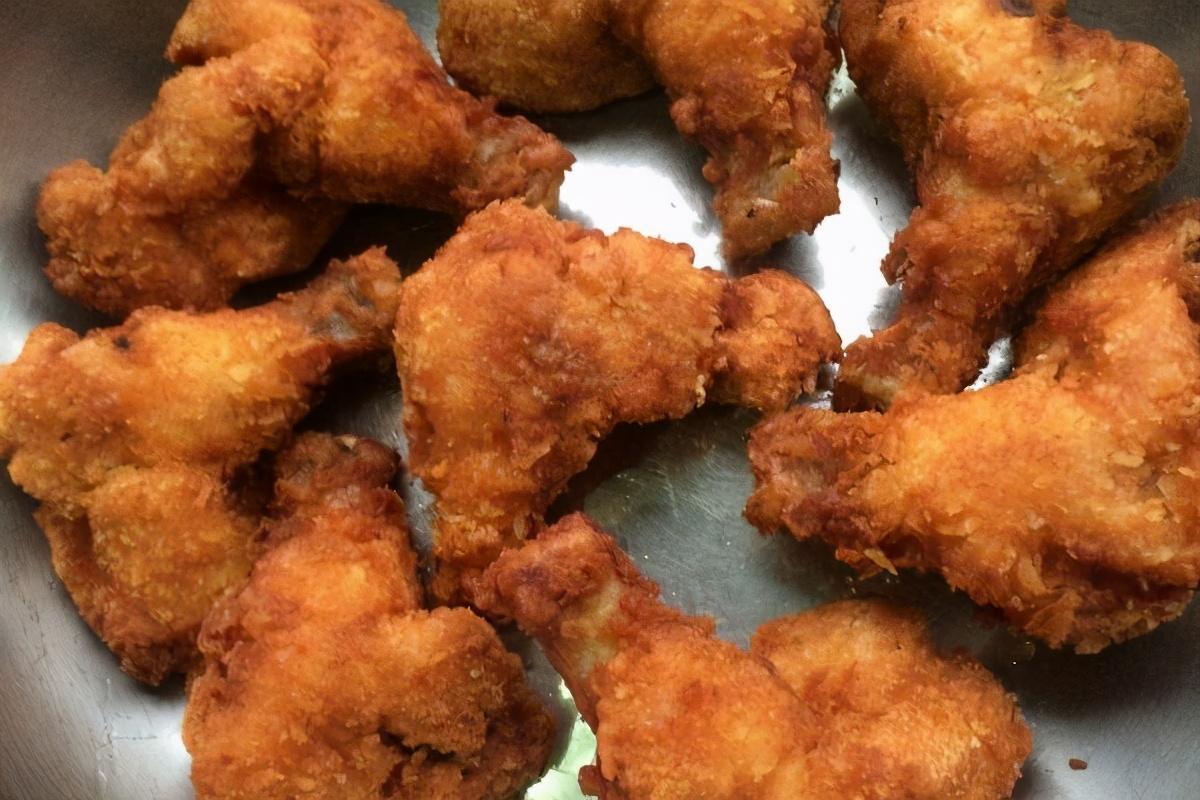 鸡腿先炸一些定型,然后再小火炸能让内部炸熟的同时表面不焦。
