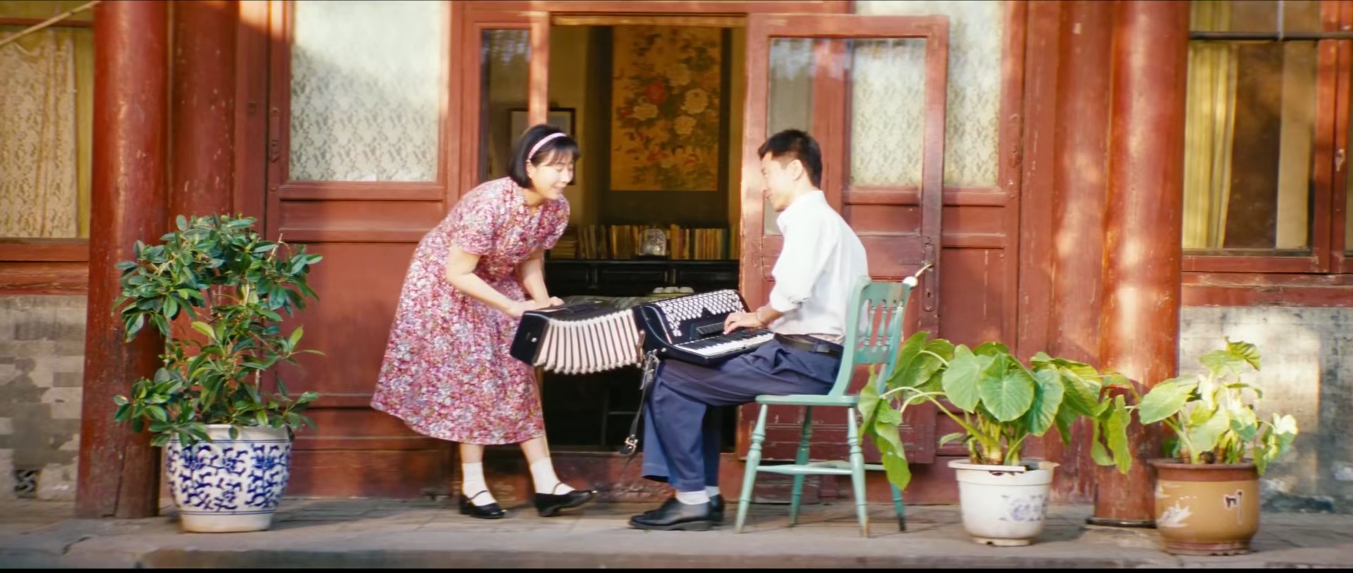 这也曾是一对男才女貌的情侣。年轻的日子里,男的穿着白衬衫,含笑弹琴,女的穿着碎花裙、小皮鞋,拉着手风琴,眼里都是男人笑的样子。