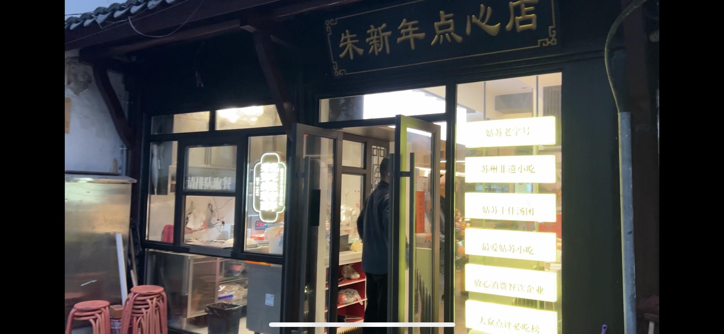 首先说荣阳楼,特色是油汆团子,通俗点讲,可以称为油炸大汤圆。这个汤圆是肉馅的,北方没有,江浙比较喜好这个。荣阳楼在新民桥西两百米左右的地方,第一天快到6点了才到山塘街,发现它还开着门,正常是晚上5点就关门的。于是先当作晚餐体验一下。点了油汆团子和传统小混沌。油汆团子挺不错,虽然不是现炸的,但还热着,外皮酥脆,粘面软糯,肉陷味道非常好,还有些汁水,增加了它的鲜美。但就这个油汆团子,可以打10分,无槽点。如果能吃到刚出锅的,那就更完美了。