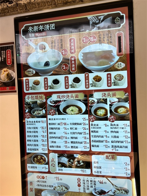 鲜肉汤团很赞,肉多汁,咬开还可见肉汤荡漾,非常鲜美,这个打十分。相比之下,这里的汤团比上海七宝老街那家还好吃,肉馅的味道更好,更多汁。