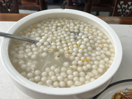它家的分量,是真不少,与苏州小家碧玉的感觉完全不一样。炒素是一大盘子,酒酿小圆子是一大盘子。