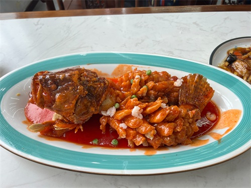 松鼠桂鱼,没什么槽点。外皮是酥脆的,鱼肉鲜嫩,量也不小,价格138,味道很好,很亲民。(吃到一半才想起拍照,尾巴已经被吃掉了)