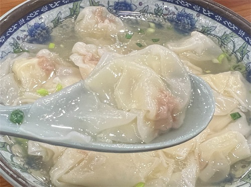 传统小混沌,皮薄透亮,看着精致,味道还可以,打个8、9分吧。与隔壁荣阳楼的小混沌相比,它家的味道好一些,汤鲜一些,混沌皮更有韧性更有嚼劲,混沌汤比荣阳楼的更鲜一些。但汤对我来讲略咸了一点,因为我不喜欢咸味盖住汤的咸味。当然,这两家的小混沌,不如熙盛源的开阳混沌好吃,毕竟这里的价格是6元,配料少一些,熙盛源的开洋混沌14元,价格差好多呢。不过熙盛源不是精致的小混沌,比较大。