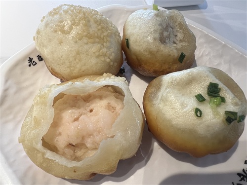 还有一个没在山塘街吃但是需要推荐的,是鑫震源大虾生煎。本来到苏州要吃的是哑巴生煎,因为更有名气,以前来苏州时也吃过。在山塘街东门外看到这家的时候,门口有十几个人在排队,虽然看评价也不错,还以为是个网红店,所以就没去吃。后来在其他地方吃到这家大虾生煎后,才发现这家时真的好吃,大虾生煎,确实味道非常鲜美,比肉馅的生煎要好吃太多,主要是它的陷是用虾泥在加一个整只虾做的,吃起来陷中还有汁水,非常之鲜。大家可以品尝一下大虾生煎。它家还有一种饮料,是塑料杯装的,一般红豆沙一般奶,忘了叫什么名字了,非常好喝。