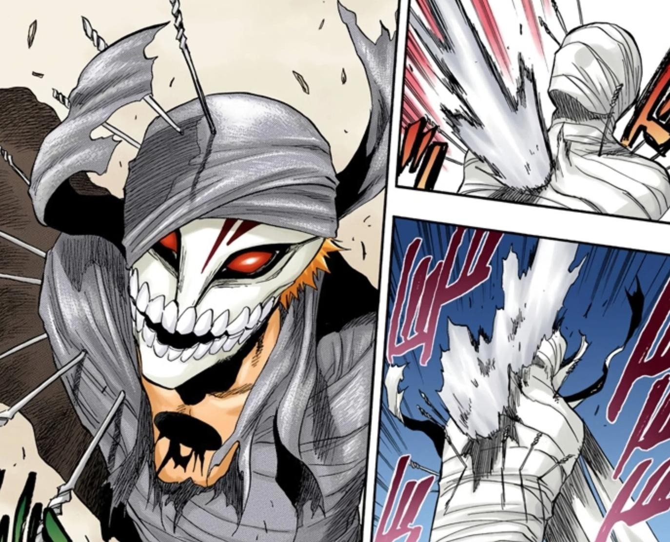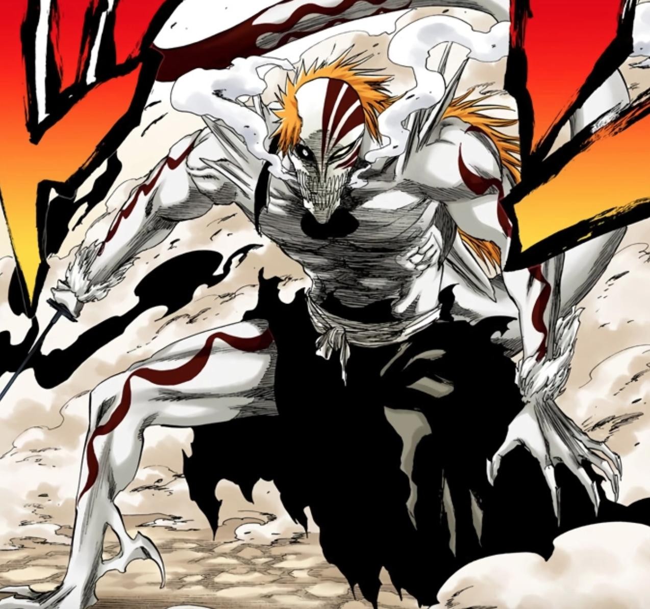 井上织姬被四刃乌鲁奇奥拉带走,一护为了营救他与其大战,令其没想到的是,对方虽然是四刃,却是十刃中唯一可以二段变身的,二段变身后将一护吊打, 更是将其胸口破开一个大洞,为了拯救井上纱织,一护丧失理智,变身为牛头虚化形态,本形态下一护力量只能用恐怖来形容。