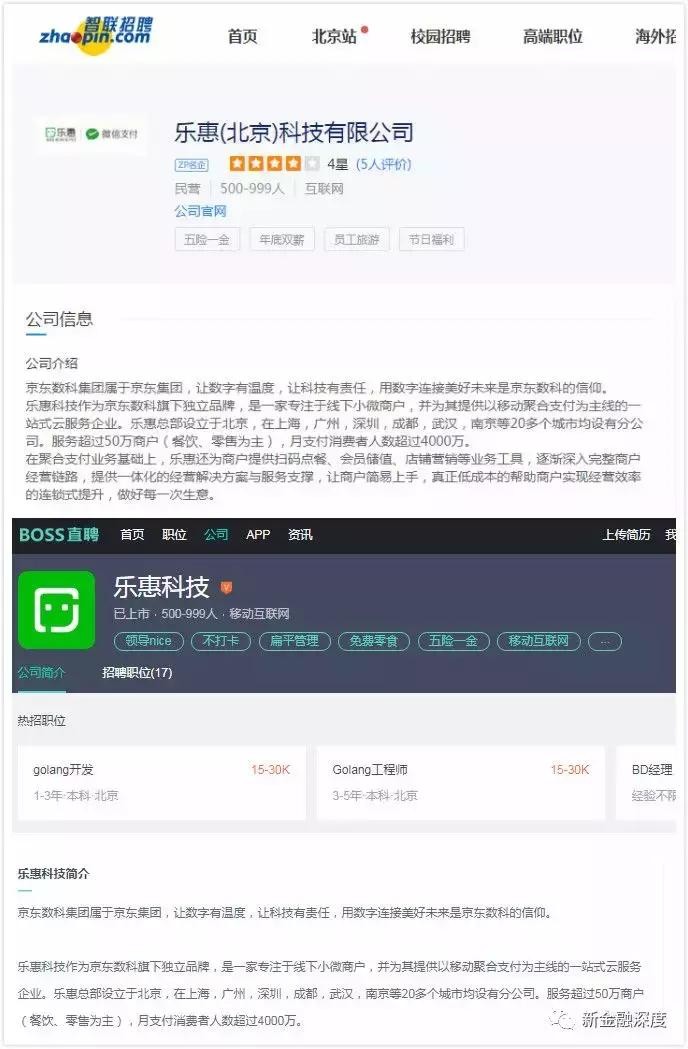 新金融深度了解到,在BOSS直聘、智联等招聘网站上,乐惠已经在公司介绍部分表明自己是京东数科旗下独立品牌。