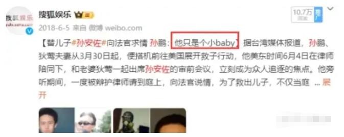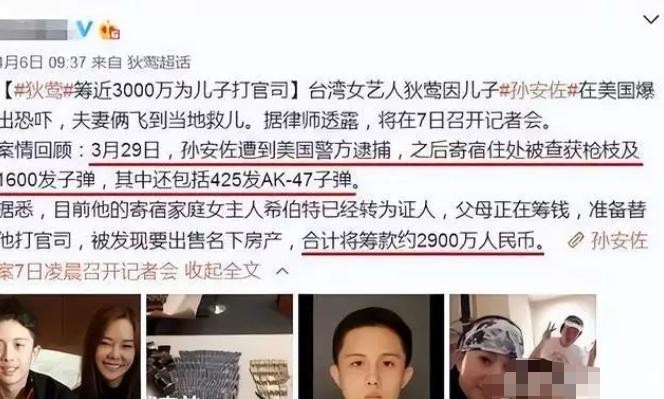 而他的母亲狄莺在知道这个事情后,独自前往泰国将儿子接回了台湾,就在回来后不久,孙安佐又被抓到在KTV里面X毒。